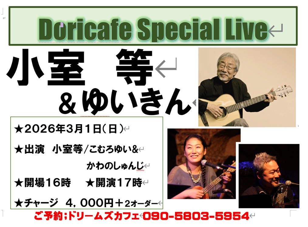『ドリカフェ スペシャルライブ 小室等&ゆいきん』
