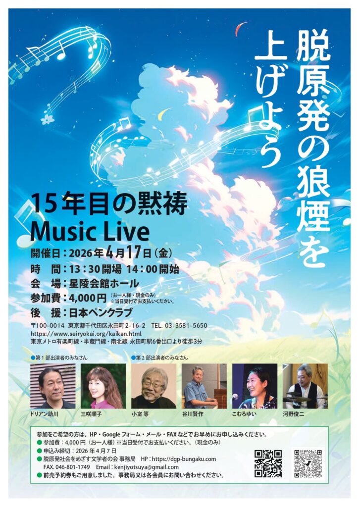 お申し込みは、脱原発をめざす文学者の会事務局へ
