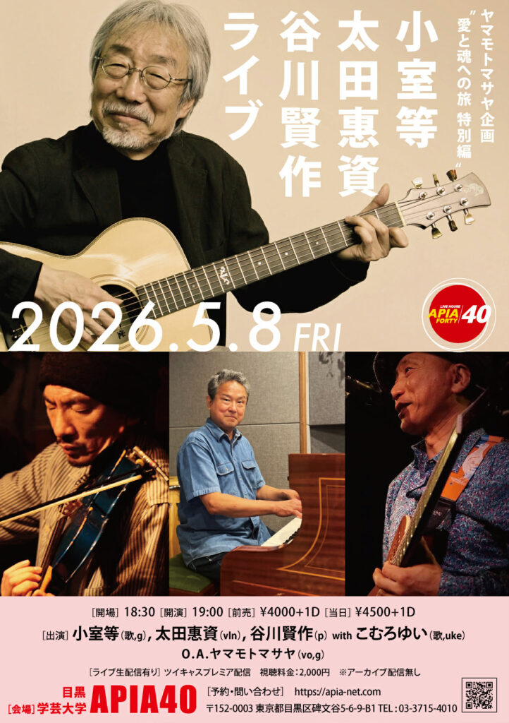 出演:小室等(歌,g), 太田惠資(vln), 谷川賢作(p)