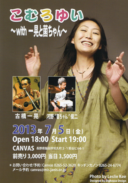 出演:こむろゆい (vo,ukulele)、古橋一晃 (g)、河野“菌ちゃん”俊二(per)
